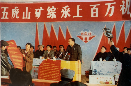 1983年,第一套综采设备试生产成功,年产原煤165万吨,五虎山煤矿一跃进入百万吨生产矿井的行列。1987年被原煤炭部确定为全国重点建设的62座现代化矿井之一。五虎山煤矿开采的原煤被源源不断地运送到包钢和其他盟市,有力地支援了自治区各地的工农业生产和城乡人民生活。