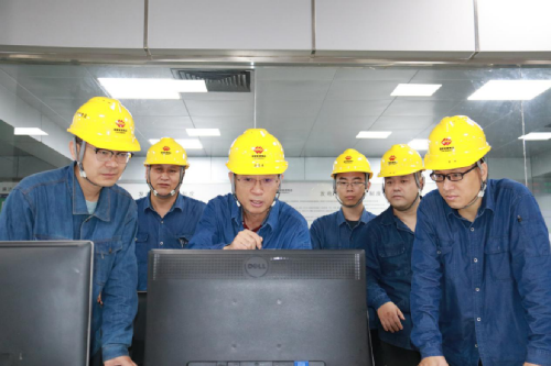 三期集控室运行乙班机组长梁基安正在部署工作,严防台风“烟花”侵袭(程晓雯摄)