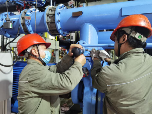 图为技术人员正在检修设备