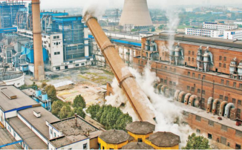 图为1号烟囱爆破现场