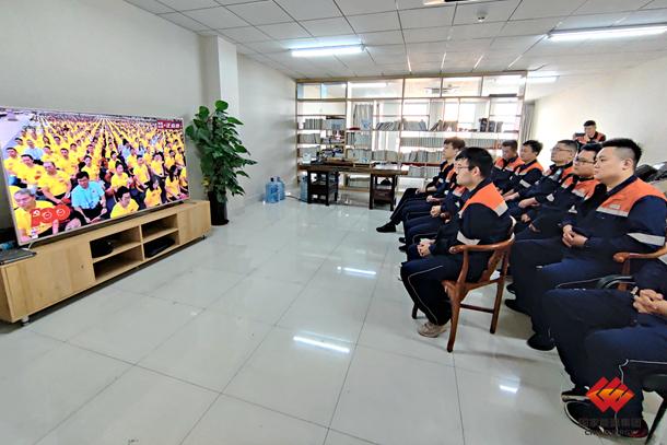 图为黄骅港务生产一部在会议室收看庆祝中国共产党成立100周年大会盛况